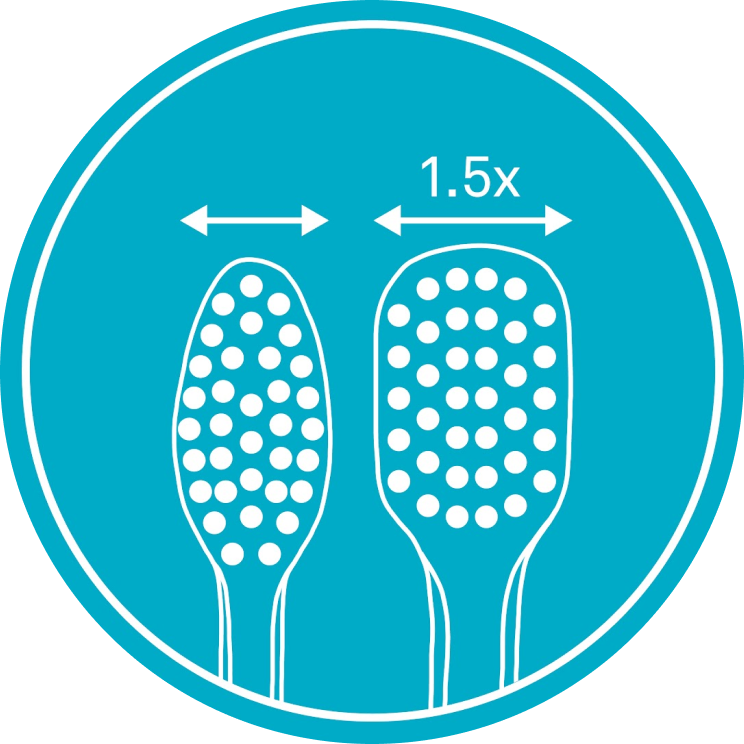 Оптимизированная щётка со специальной щетиной ▶36 пучков щетинок Pro Ortho компактно расположены в 6 рядов - эта щётка в 1,5 раза шире обычной зубной щётки. ▶Pro Ortho чистит надежно и быстро, так как головка этой зубной щётки не только шире, но и короче. Это позволяет вам последовательно очищать каждый брекет, зуб и десну. ▶Два внешних ряда щетинок Pro-Ortho с каждой стороны прошиты ультра мягкой щетиной Konex HD® 0,02мм. Они настолько тонкие и гибкие, что могут адаптироваться к любому зубному рельефу, мягко очищая линию дёсен и пространство между зубами. |